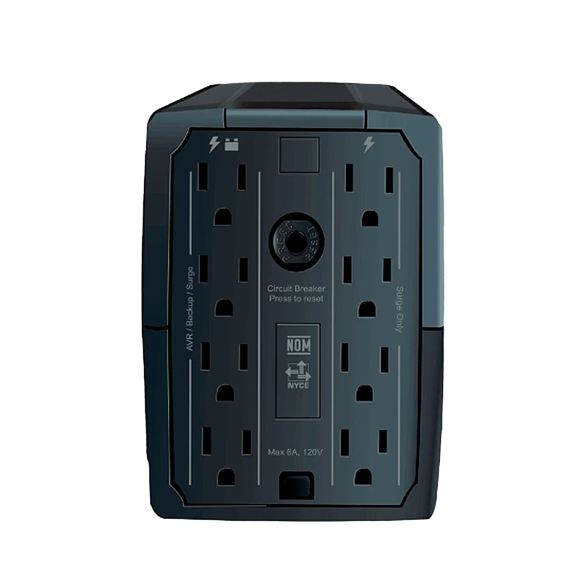 8 Tomas NEMA 5-15R (4 con respaldo + 4 con supresión) |